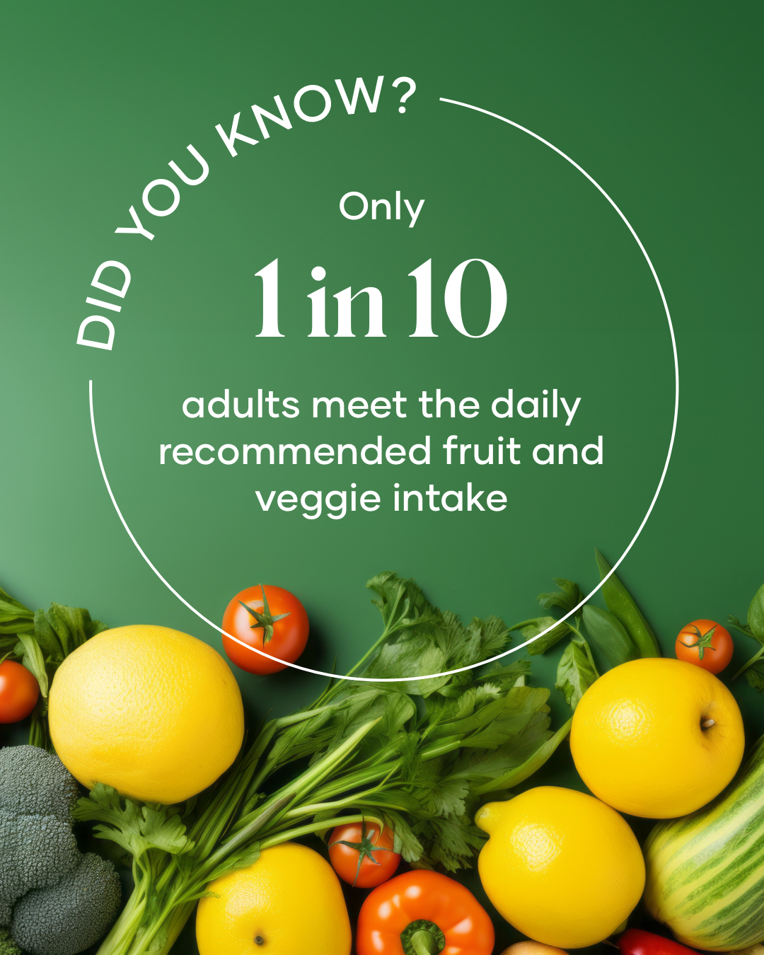 Did you know? Only 1 in 10 adults gets the recommended daily amount of fruits and vegetables. Adding just one more serving a day can make a big difference for your health—boosting energy, improving heart health, and supporting your immune system.
